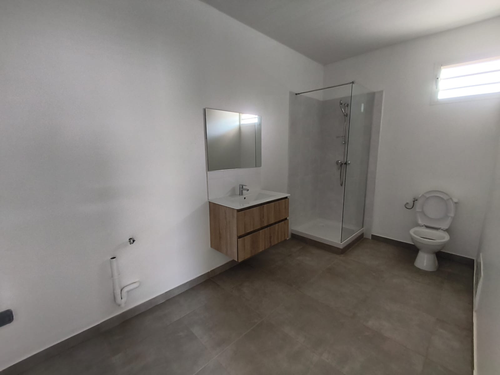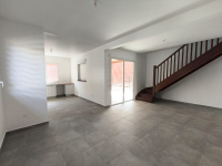 Découvrez cette magnifique maison individuelle neuve de type DUPLEX F5 Elle se compose comme suit : Au rez-de-chaussée : un séjour lumineux et spacieux accessible depuis la terrasse, une suite parentale climatisée avec salle d'eau attenante et WC, une cuisine aménagée avec passe plat, uen buanderie. À l’étage : trois chambres climatisées, une salle d’eau avec WC. À l’extérieur : un jardin privatif.
